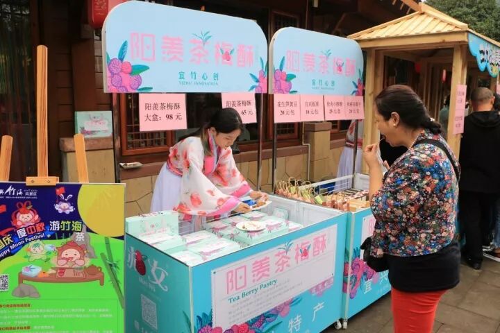 在景区门口、竹荫轩门口的广场上,汇聚了琳琅满目的小吃,种类多样,口味丰富,满足了所有人的需求。竹海特色阳羡茶梅酥更是受到了游客们的青睐,大家纷纷表示离开的时候要带几盒回家。游客们在深氧界里漫享竹海缤纷美食盛宴,满满的满足感与幸福感。
