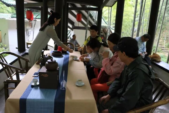 海底茶楼精彩的茶道表演,为游客们拂去旅程的疲惫。幽幽茶香,茶水泡软了时光,也静美了岁月,尽享一份清宁和通透。置身在竹海醉人的深氧里,一家人其乐融融。