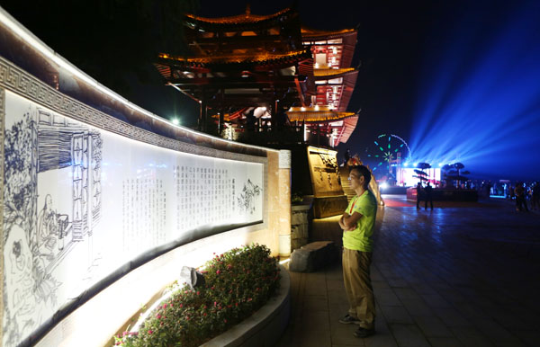 中国规模最大的多媒体唐诗文化墙。文化墙将《唐诗三百首》镶嵌在环湖风光带清水游道的空白景观墙上,文化景观墙共计80块,总长3.8公里,以诗文为主、配图点缀,字体一律采用印刷体,各景观墙独立成景,再现了寄情于湖光山色的诗文韵味。
